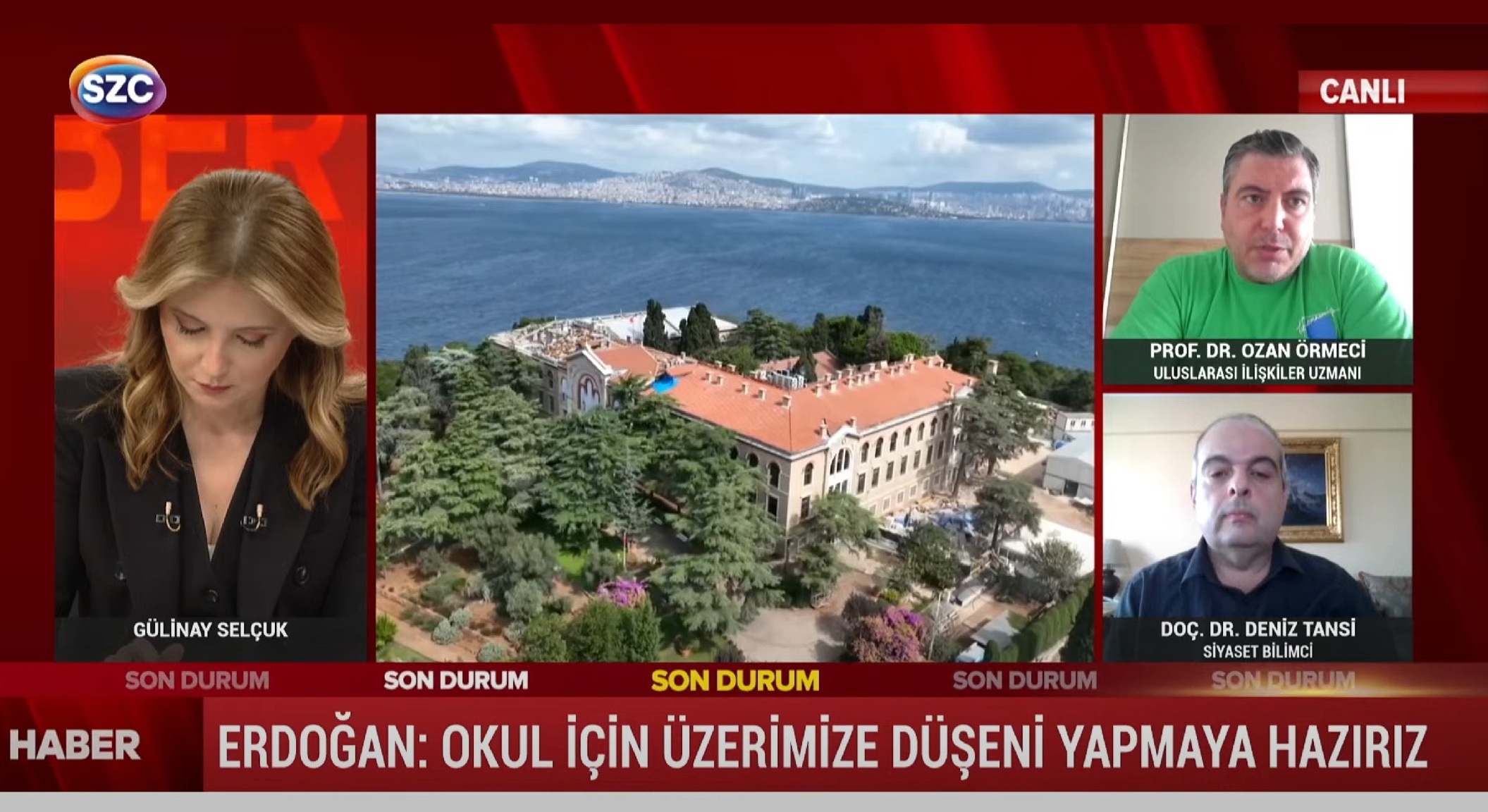 Uluslararası Politika Akademisi (UPA) yazarları Prof. Dr. Ozan Örmeci ile Doç. Dr. Deniz Tansi, 27 Eylül 2025 tarihinde Sözcü Tv‘de yayınlanan “Gülinay Selçuk ile Haber Bülteni” programında Cumhurbaşkanı Erdoğan’ın ABD ziyareti ve bu ziyaret temelinde Türk-Amerikan ilişkilerinde yaşanan güncel gelişmeleri yorumladılar. Aşağıdaki linkten bu programı izleyebilirsiniz.