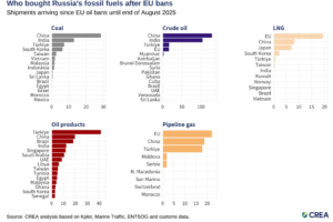 [5] https://energyandcleanair.org/august-2025-monthly-analysis-of-russian-fossil-fuel-exports-and-sanctions/#:~:text=Russia’s%20fossil%20fuel%20exports%20remain,narrow%20set%20of%20key%20customers.