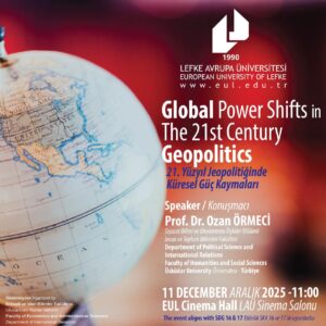 Üsküdar Üniversitesi öğretim üyesi ve Uluslararası Politika Akademisi (UPA) Genel Koordinatörü Prof. Dr. Ozan Örmeci, 11 Aralık 2025 tarihinde KKTC-Kuzey Kıbrıs’ta Lefke Avrupa Üniversitesi’nde düzenlenen özel bir konferansa konuk oldu ve “Global Power Shifts in the 21st Century Geopolitics” adlı sunumunu gerçekleştirdi. Aşağıda, bu konferanstaki sunuma ve bazı fotoğraflara ulaşabilirsiniz.